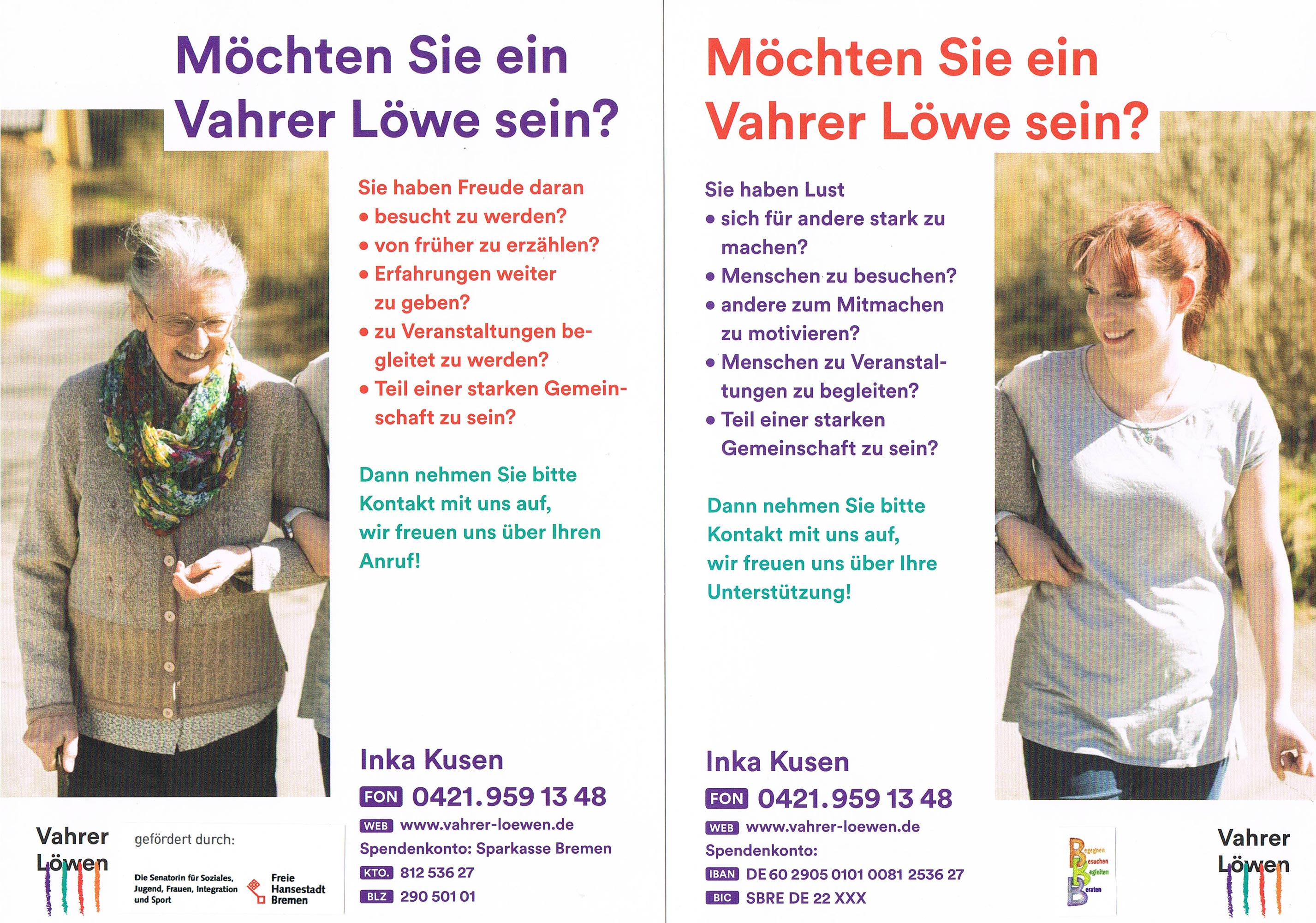 Die Vahrer Löwen sind ein seit März 2014 bestehender, ehrenamtlich tätiger Verein für aufsuchende Seniorenarbeit und zur Förderung des nachbarschaftlichen Miteinanders.